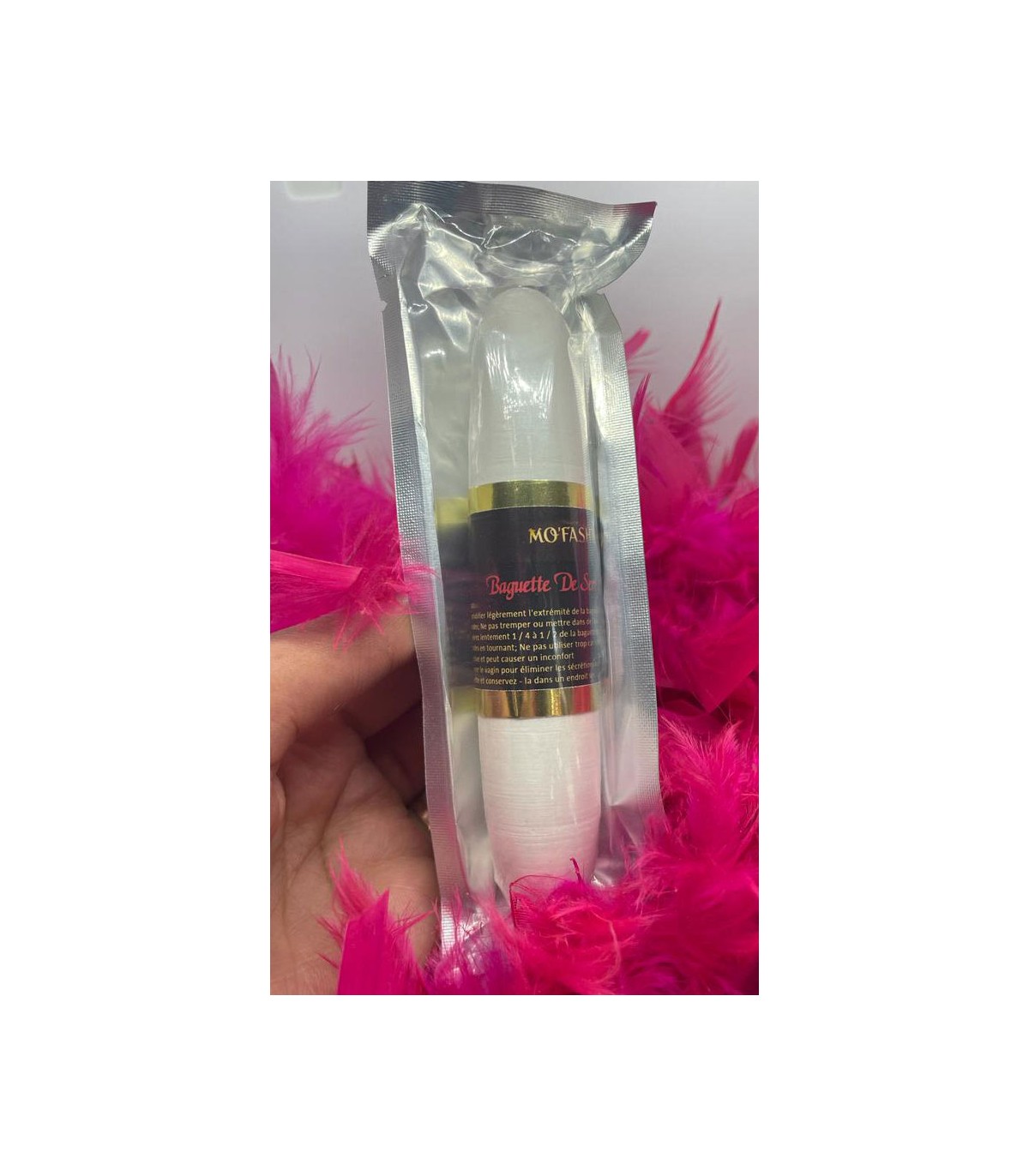 - INSÉREZ LENTEMENT 1/4 À 1/2 DE LA BAGUETTE DANS LE VAGIN PENDANT 30 SECONDES EN TOURNANT; NE PAS UTILISER TROP CAR IL PEUT CAUSER UNE TENSION VAGINALE EXCESSIVE ET PEUT CAUSER UN INCONFORT